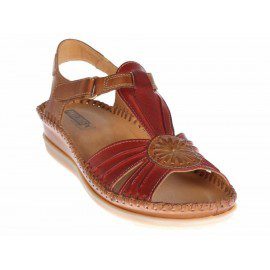 DESCRIPCIÓNSandalia lisa wedge Pikolinos de piel Sandalia de punta redonda con fijación de velcro y pespunte…